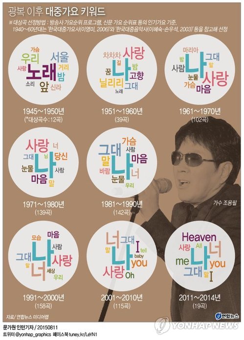 연합뉴스 1945~2014년까지 인기 대중가요 276곡 가사 분석