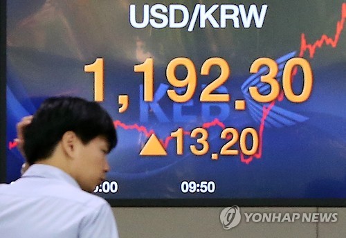원/달러 환율 장중 1,190원대 돌파…3년10개월 만(종합)