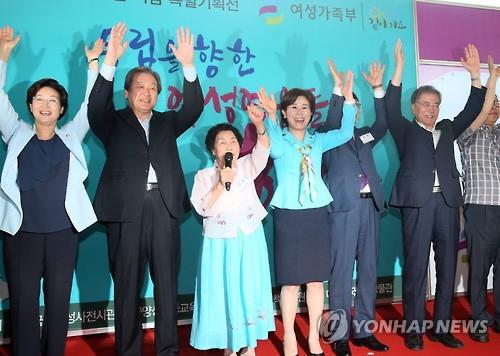 개막식 행사에는 김무성 새누리당 대표와 문재인 새정치민주연합 대표, 김희정 여성가족부 장관 등 정계와 여성계 인사 100여명이 참석했다.