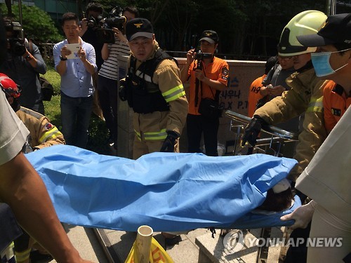 | △ 서울 일본대사관 앞에서 80대 남성 분신 (서울=연합뉴스) 권영전 기자 = 12일 오후 서울 종로구 주한 일본대사관 앞에서 열린 수요집회에서 분신을 시도한 최현열(81)씨가 병원으로 이송되고 있다. |