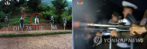중앙TV는 이 과녁들을 공개하고서 군인들이 과녁을 향해 권총과 기관총으로 실탄 사격을 하는 장면도 연달아 내보냈다.