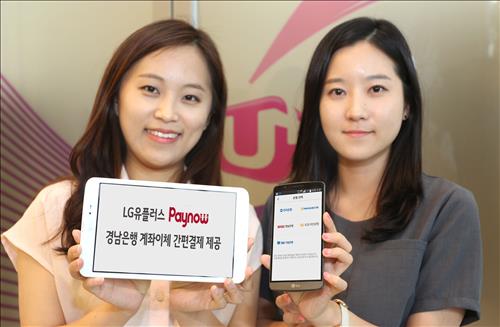 (서울=연합뉴스) 현윤경 기자 = LG유플러스[032640]는 자사의 간편결제 서비스인 '페이나우'에서 경남은행 계좌이체 간편결제를 제공한다고 13일 밝혔다.
