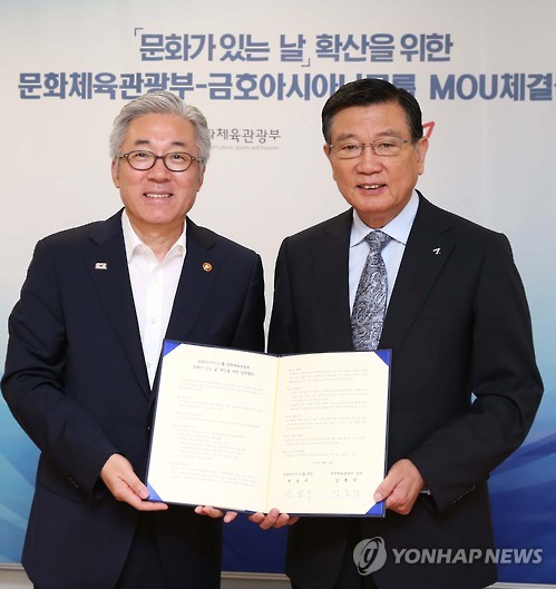 김종덕 문체부 장관과 박삼구 금호아시아나그룹 회장은 이날 오전 국립현대미술관 서울관에서 이런 내용을 포함해 '문화가 있는 날' 확산을 위한 업무협약을 한다.