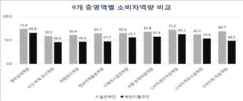한국소비자원은 지난 6∼7월 전국의 20∼40세 북한이탈주민 621명을 직접 면담한 결과 거주기간이 7년 이상인 북한이탈주민의 소비자역량은 100점 만점에 58.1점으로 남한 일반국민의 평균점수인 66.1점의 87.9%에 이르렀다고 13일 밝혔다.
