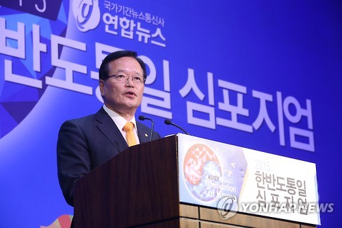 정 의장은 이날 서울 웨스틴 조선호텔에서 국가기간뉴스통신사인 연합뉴스와 대통령 직속 통일준비위원회가 공동 주최한 '2015 한반도통일 심포지엄' 축사에서 이렇게 주장했다.