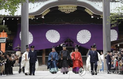 신사는 또 일왕의 참배에 대해 "엄숙히 기다린다"고 밝혔다. 일왕의 참배는 1975년 이후 중단됐다. 그 배경에는 A급 전범 합사에 대한 쇼와(昭和) 일왕의 불만이 자리잡고 있다는게 유력한 설이다.