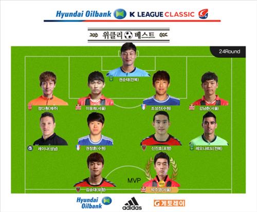 위클리 베스트11 공격수 부문에는 박주영과 함께 김승대(포항)가, 미드필더 부문에는 레오나르도(전북), 신진호(포항), 권창훈(수원), 레이나(성남)가 선정됐다.