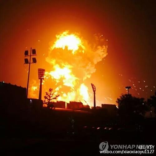 (베이징=연합뉴스) 이준삼 특파원 = 12일 심야에 발생한 중국 톈진(天津)시 빈하이(濱海)신구 탕구(塘沽)항 물류창고 대형 폭발사고로 시안화나트륨 등 강한 독성 물질이 다량 유출됐을 가능성이 제기되고 있다.