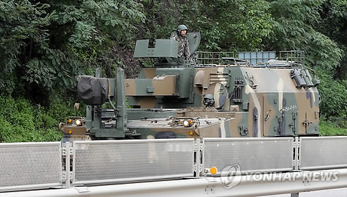 | △ 한미 군 당국이 을지프리덤가디언(UFG) 연습을 시작한 지난해 8월 18일 경기도 파주시 접경지역에서 궤도차량이 이동하고 있다. (연합뉴스 자료사진) |