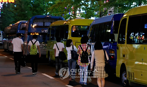| △ 학원가에서 수업을 마친 학생들이 귀가하는 학원버스로 향하고 있다. (연합뉴스 자료사진) |