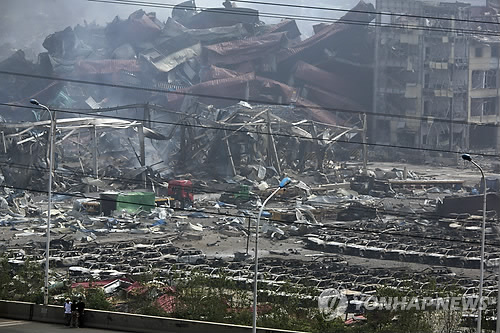 | △ 中, '텐진' 유언비어 인터넷계정 폐쇄 (텐진 AP=연합뉴스) 중국 관영 신화통신은 16일 톈진(天津) 폭발사고로 112명이 숨지고 95명이 실종됐다고 보도했다. 톈진 병원에서 치료를 받는 부상자 721명 가운데 58명이 중상이어서 사망자 수는 한층 증가할 것으로 보인다고 인민일보가 전했다. 중국의 인터넷 검열 기관인 국가인터넷정보 판공실은 중국판 트위터인 웨이보(微博) 및 모바일 메신저 웨이신(微信·위챗) 운영사 측에 유언비어를 유포한 360개 계정을 폐쇄, 또는 정지시키도록 한 것으로 전해졌다. 사진은 아수라장으로 변한 폭발 현장 잔해 속에서 15일 연기가 계속 피어오르는 모습. bulls@yna.co.kr |