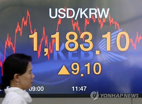 17일 서울 외환시장에서 원/달러 환율은 달러당 1,183.1원으로 마감해 전 거래일 종가보다 9.1원 올랐다.