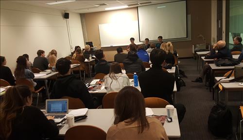 이곳에서는 알렉스 뉴튼 교수의 국제인권법 과목을 수강하는 학생 약 40명이 안명철 NK워치 대표와 함흥출신 박광일 씨 등 탈북자 2명의 증언을 들은 뒤 질문을 이어갔다.