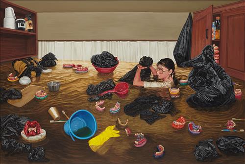 작가는 "냉장고 문을 열면 갖가지 음식 냄새가 나는데, 순간 그러한 것들이 징글징글하게 보이면서도 그래서 사는 것인지도 모른다는 생각에 신기해하곤 한다"며 "잉여음식을 저장하는 냉장고를 매개로 고대와 현대를 넘나들며 인간사를 일기 써나가듯 그렸다"고 말했다.