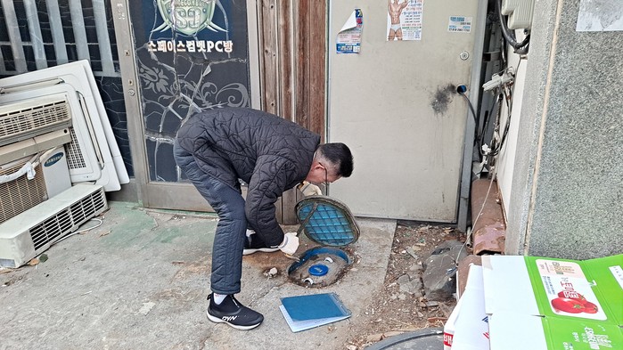 [사진설명] 수도검침원의 계량기 점검.