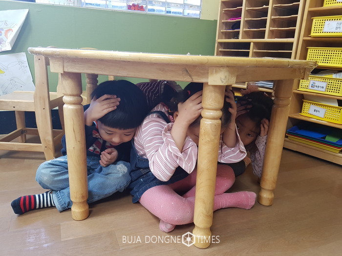 | △평소 매월 1회 이상 화재와 지진 등 상황에 따른 대피 훈련을 세계적으로 실시해온 화운 유치원은 지진 이후 재난안전센터와 기사청으로부터 제공되는 정보를 주시하며, 추후 발생할 수 있는 피해 상황에 대처할 수 있도록 비상태세를 유지할 방침이다 |