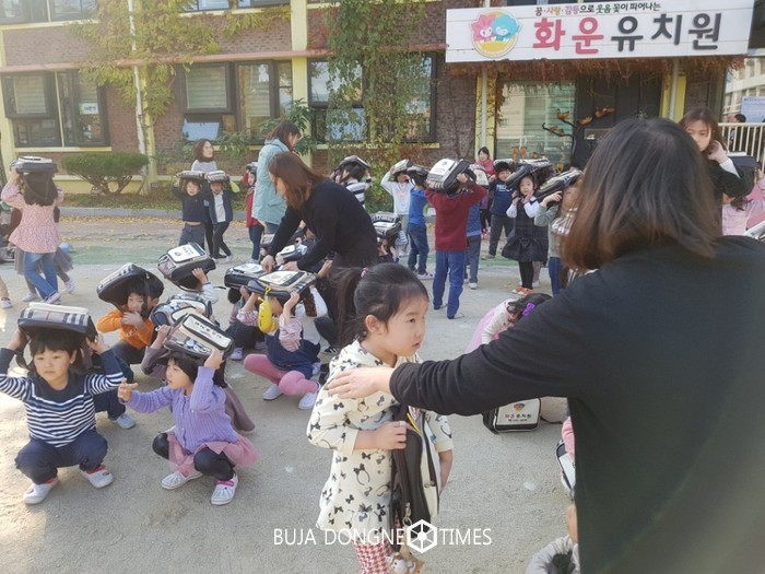 | △광주광역시 공립 화운유치원 유아 114명과 전 교직원이 지진 발생 3분 이내에 전원 운동장으로 신속하게 대피를 완료하며 재난 상황에 잘 대비된 모습을 보였다 |
