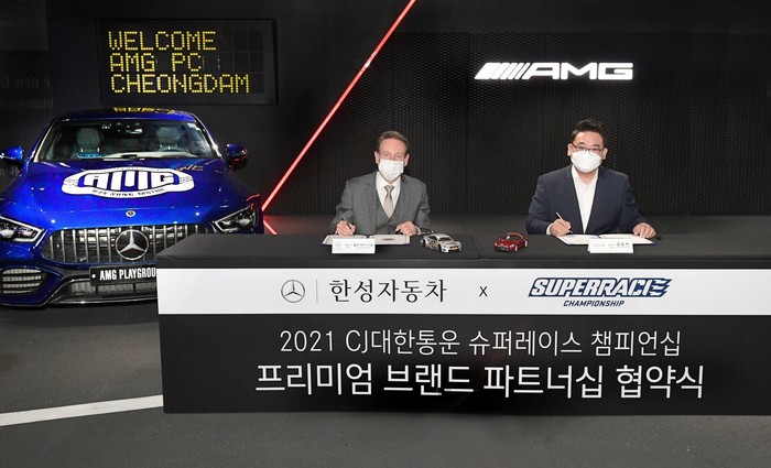 [부자동네타임즈 김인수기자] 2021 CJ대한통운 슈퍼레이스 챔피언십이 새로운 파트너를 만났다. 메르세데스-벤츠 코리아 공식 딜러인 한성자동차가 슈퍼레이스 챔피언십과 협약을 맺고 프리미엄 브랜드로 대회에 참여한다. 한성자동차는 이번 협약을 통해 슈퍼레이스 챔피언십이 개최되는 레이스 현장에 광고를 게재하는 것은 물론이고, 생중계를 통해 노출되는 가상광고 등을 진행한다.