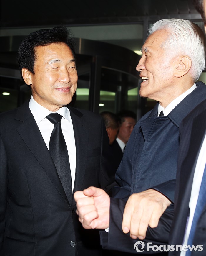 (서울=포커스뉴스) 손학규 전 새정치민주연합 상임고문이 25일 오후 서울 종로구 연건동 서울대병원 장례식장에 마련된 고 김영삼 전 대통령 빈소에서 조문하고 나온 최형우 전 내무부 장관을 배웅하고 있다.