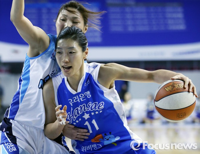 구슬은 WKBL 심판부, 경기운영요원, TC, 감독관 투표에서 총 33표 중 21표를 얻어 우리은행 김단비(6표) 이은혜(5표) 삼성생명 강계리(1표)를 제치고 MIP로 선정됐다. 개인 첫 라운드 MIP로 2라운드 MIP투표에서 2위에 그친 아쉬움을 털어냈다. 구슬은 3라운드 5경기 평균 19분34초를 뛰며 4.2득점 1.6리바운드 0.8어시스트 가로채기 0.2개를 기록했다. 3점슛 성공률은 26.7%(15개 중 4개)다.(용인=포커스뉴스) 17일 용인실내체육관에서 열린 2015-2016 여자프로농구 삼성생명-우리은행 경기에서 우리은행 임영희가 삼성생명 최희진의 마크를 어깨로 밀며 골밑으로 대시하고 있다. 2015.12.17 우정식 기자