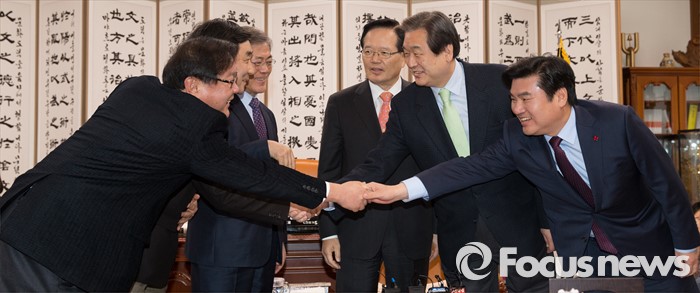 | △ 인사하는 여야 |