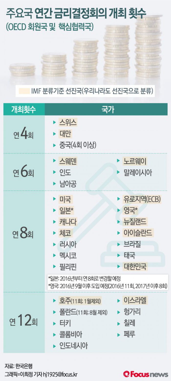 이로써 한은 금리결정 회의는 미국 중앙은행인 연방준비제도(연준)과 같이 6~7주에 한번 꼴로 열릴 예정이다.