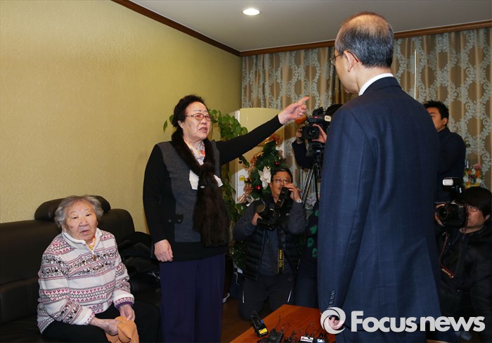 임성남 외교부 1차관이 일본군 위안부 피해자 할머니께 호통을 들었습니다. 일본과의 합의에 대해 "일본 외교부와 짝짜꿍" "우리를 왜 두 번 죽이느냐"고 항의를 표시한 할머니들은 "싸워온 그대로 싸워나갈 것"이라고 의지를 밝혔습니다.