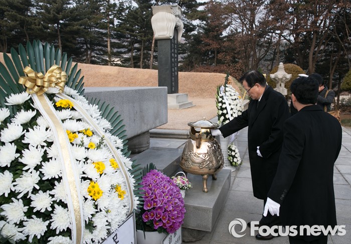 (서울=포커스뉴스) 병신년(丙申年) 새해 첫 날인 1일 오전 동작구 국립서울현충원에서 정의화 국회의장이 이승만 전 대통령 묘역 참배를 하고 있다.
