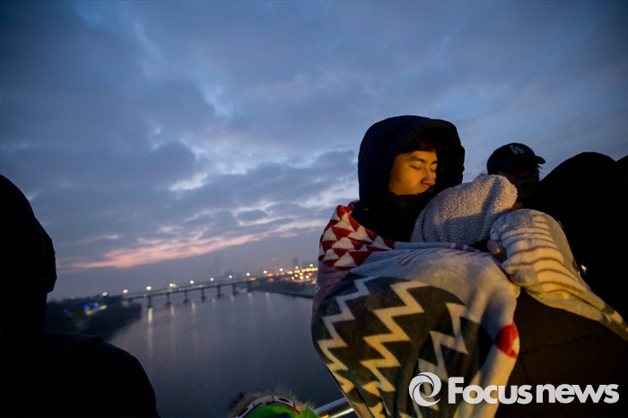 (서울=포커스뉴스) 2016 병신년(丙申年) 첫날인 1일 아침 서울 영등포구 선유도에 새해 첫 일출을 보기 위해 온 연인이 추위를 견디며 기다리고 있다.