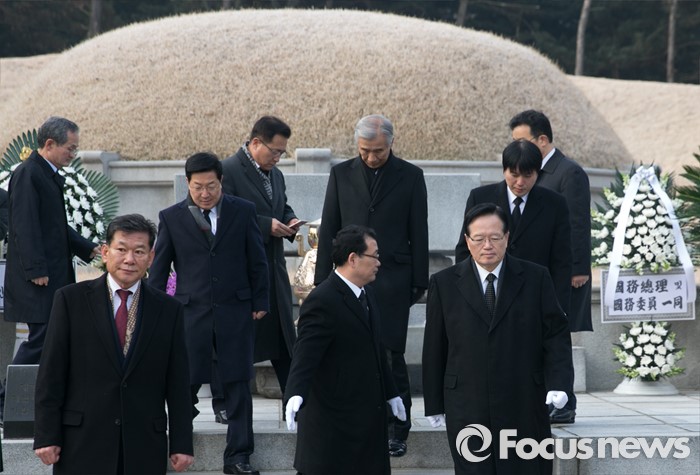 (서울=포커스뉴스) 병신년(丙申年) 새해 첫 날인 1일 오전 동작구 국립서울현충원에서 정의화 국회의장이 이승만 전 대통령 묘역 참배를 마친 뒤 이동하고 있다.