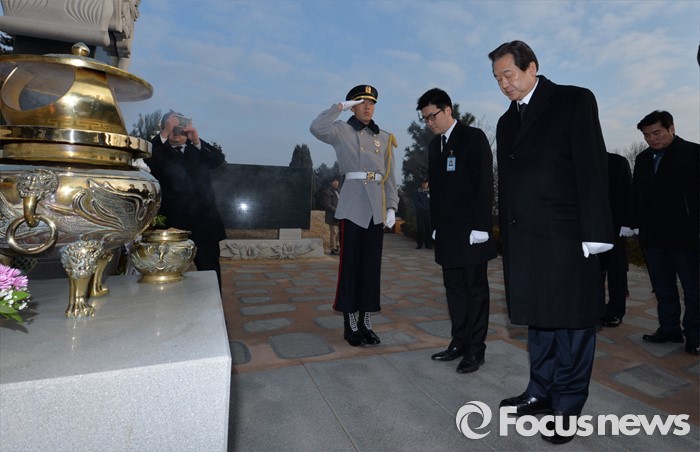 (서울=포커스뉴스) 병신년(丙申年) 새해 첫 날인 1일 오전 동작구 국립서울현충원에서 김무성 새누리당 대표가 김대중 전 대통령 묘역 참배를 하고 있다.