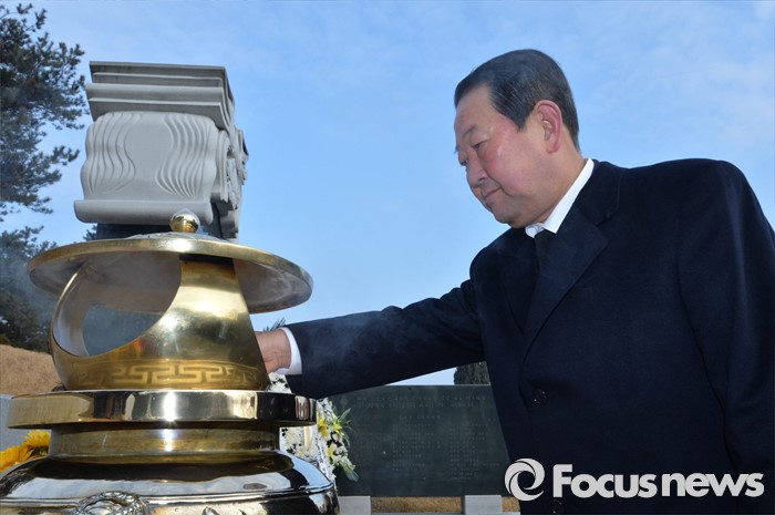 (서울=포커스뉴스) 병신년(丙申年) 새해 첫 날인 1일 오전 동작구 국립서울현충원에서 통합신당을 추진 중인 박주선 무소속 의원이 김대중 전 대통령 묘역 참배를 하고 있다.
