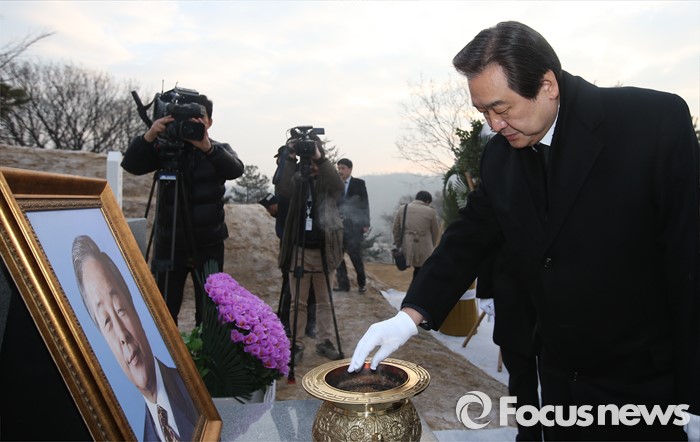 (서울=포커스뉴스) 병신년(丙申年) 새해 첫 날인 1일 오전 동작구 국립서울현충원에서 김무성 새누리당 대표가 김영삼 전 대통령 묘역 참배를 하고 있다.