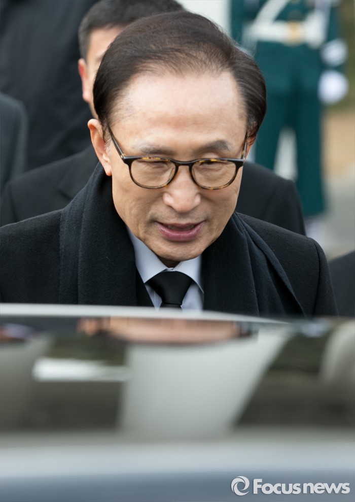 (서울=포커스뉴스) 병신년(丙申年) 새해 첫 날인 1일 오전 동작구 국립서울현충원에서 현충탑 참배를 마친 이명박 전 대통령이 차량으로 향하고 있다.