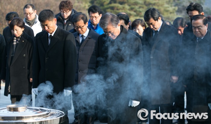 (서울=포커스뉴스) 병신년(丙申年) 새해 첫 날인 1일 오전 동작구 국립서울현충원에서 문재인 더불어민주당 대표 등 의원들이 현충탑 참배를 하고 있다.