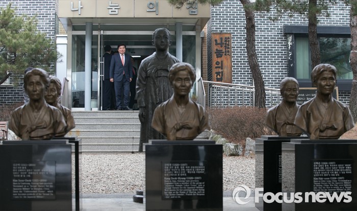 (광주=포커스뉴스) 병신년(丙申年) 새해 첫 날인 1일 오후 원유철 새누리당 원내대표 등 의원들이 경기도 광주 일본군 위안부 피해자 쉼터 나눔의 집을 방문해 간담회를 마친 뒤 나서고 있다.