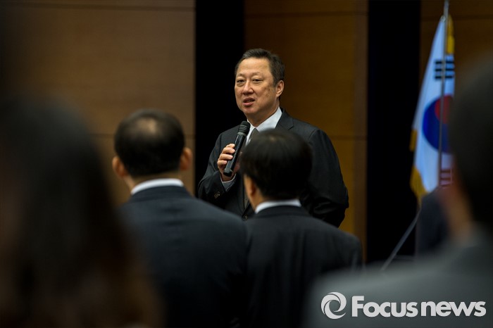 (서울=포커스뉴스) 박용만 대한상공회의소 회장이 4일 오전 서울 중구 대한상공회의소에서 열린 신녀인사회에 자리해 신년사를 하고 있다.