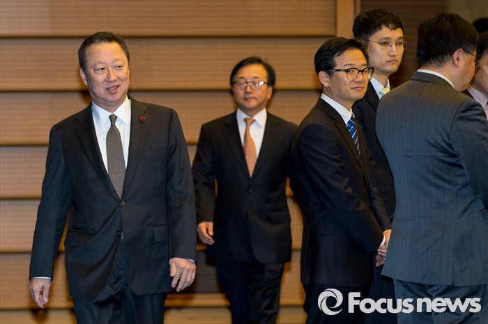 | △ 행사장으로 들어서는 박용만 회장 |