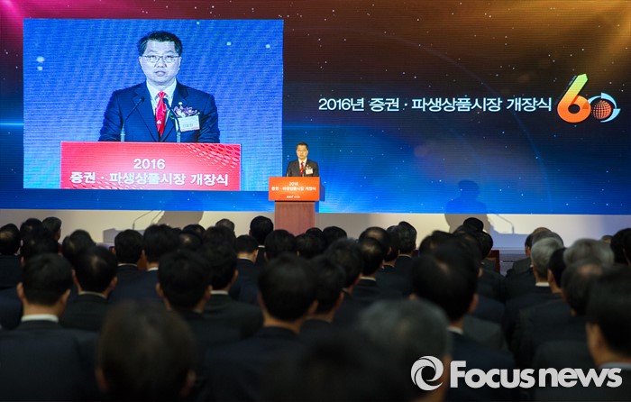 (서울=포커스뉴스) 병신년(丙申年) 새해 첫 증시 개장일인 4일 오전 영등포구 서울 여의도 거래소 2016년도 증권·파생상품시장 60주년 개장식에서 진웅섭 금융감독원장이 축사를 하고 있다.