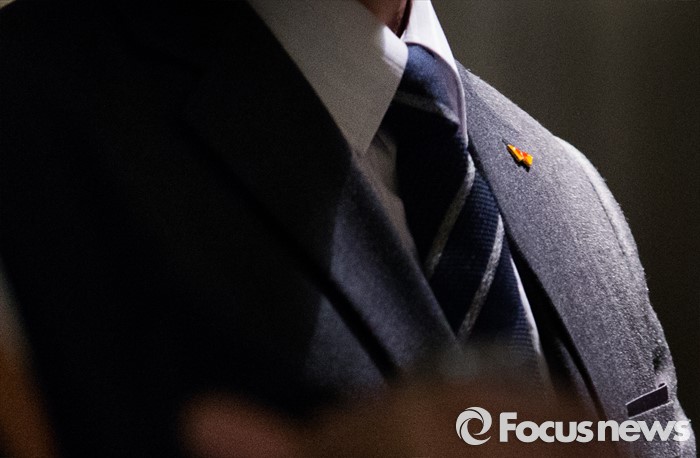 (서울=포커스뉴스) 4일 오전 서울 광장동 워커힐호텔에서 비공개로 진행된 SK그룹 신년회에 참석한 관계자의 가슴에 배지가 달려 있다.