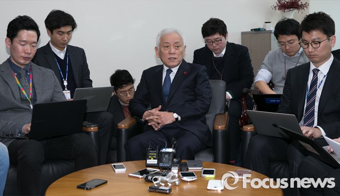 (서울=포커스뉴스) 더불어민주당을 탈당한 김한길 무소속 의원이 4일 오후 서울 여의도 국회 의원회관 의원실에서 향후 계획 등과 관련 기자간담회를 하고 있다.