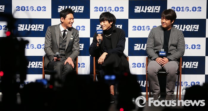이일형 감독의 데뷔작이다. 다음 달 4일 개봉 예정이다.(서울=포커스뉴스) 4일 오후 서울 강남구 압구정 CGV에서 열린 영화 '검사외전' 제작보고회에 참석한 강동원(가운데)이 인사말을 하고 있다. 왼쪽부터 배우 황정민, 강동원, 영화감독 이일형. 2016.01.04 김유근 기자