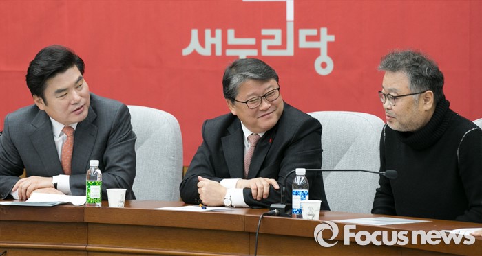(서울=포커스뉴스) 조동원(오른쪽) 새누리당 홍보기획본부장이 5일 오전 서울 여의도 국회에서 열린 원내대책회의에 참석해, 원유철(왼쪽) 원내대표, 조원진 원내수석부대표와 대화하고 있다.