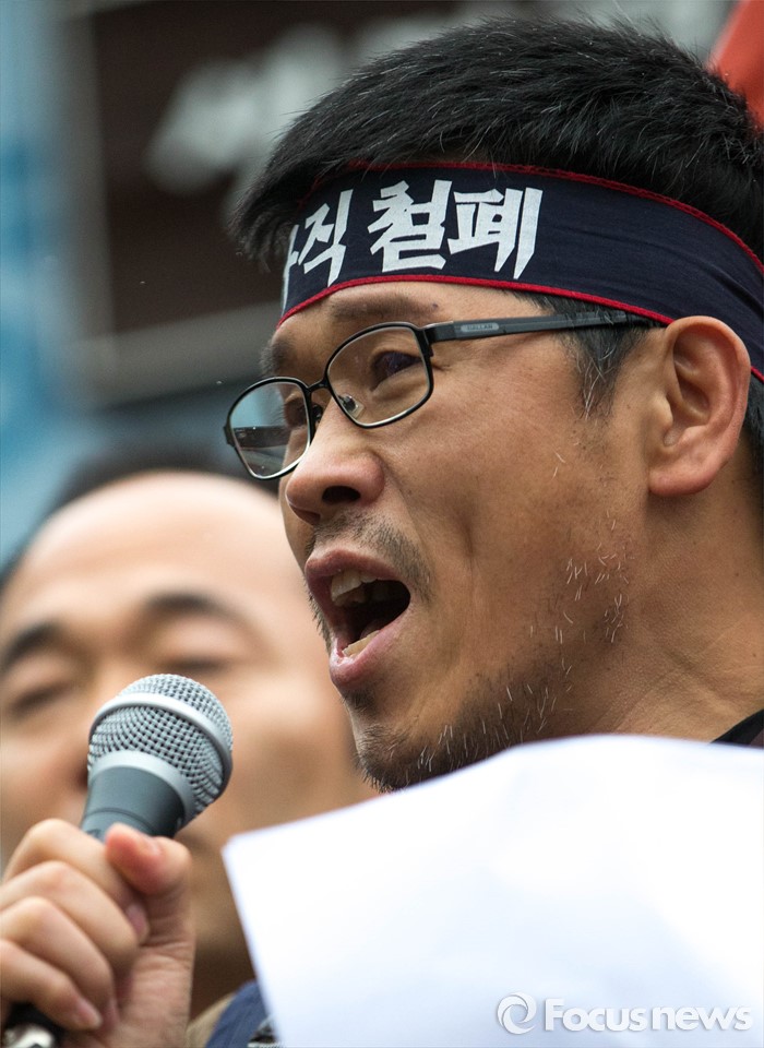 | △ 목소리 높이는 한상균 민주노총 위원장 |