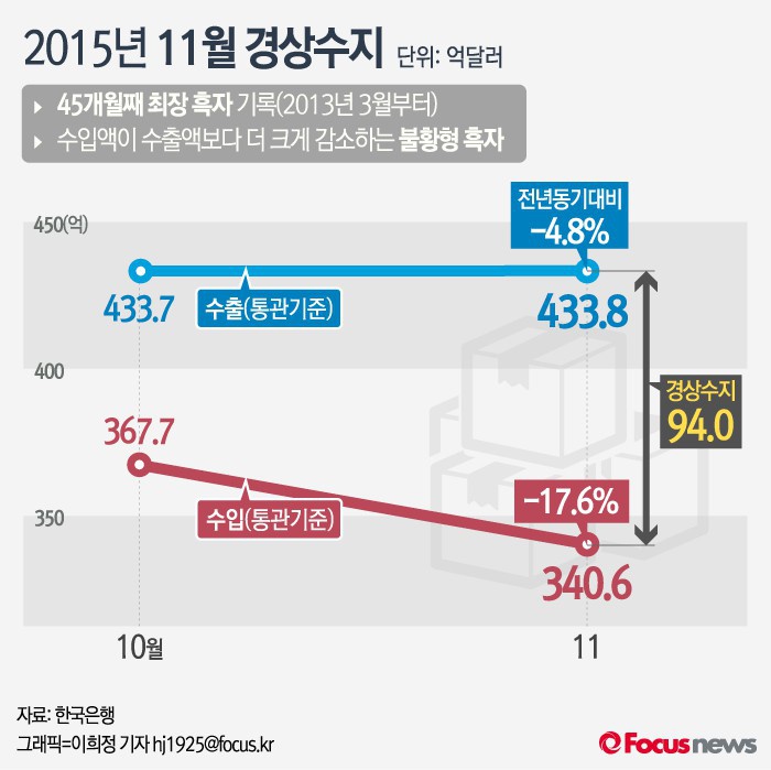 (☞ 지난해 11월 경상수지 94억달러 흑자…45개월째 흑자 지속 - 기사 바로가기)