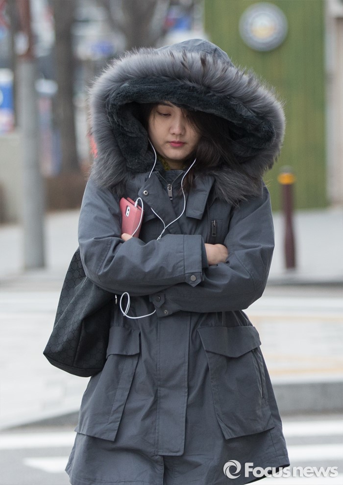 (서울=포커스뉴스) 겨울의 다섯번째 절기인 소한인 6일 아침 서울 종로구 광화문에서 한 시민이 출근길에 나서고 있다.