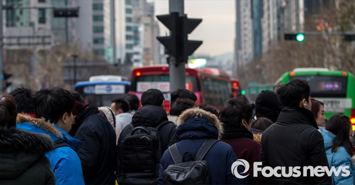 (서울=포커스뉴스) 절기상 소한(小寒)인 6일 오전 서울 강남역 인근에서 직장인들이 영하권 강추위에 두꺼운 외투를 입고 신호를 기다리고 있다.