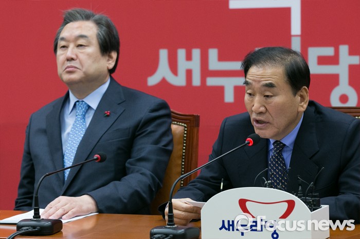 (서울=포커스뉴스) 이재오(오른쪽) 새누리당 의원이 6일 오전 서울 여의도 국회에서 열린 최고중진연석회의에 참석해 발언하고 있다.