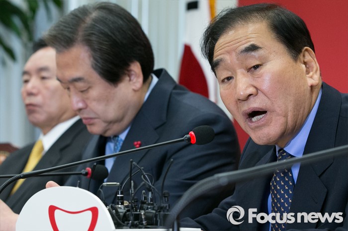 (서울=포커스뉴스) 이재오(오른쪽) 새누리당 의원이 6일 오전 서울 여의도 국회에서 열린 최고중진연석회의에 참석해 발언하고 있다.