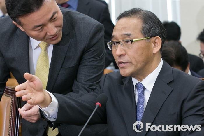 (서울=포커스뉴스) 홍윤식(오른쪽) 행정자치부 장관 후보자가 6일 오전 서울 여의도 국회에서 열린 인사청문회에 출석해 직원으로부터 설명을 듣고 있다.